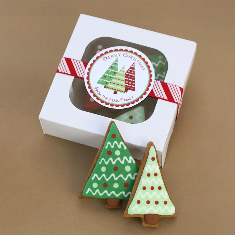 You can personalize the size, shape, style, artwork, colors, and finishes to match your holiday branding and bakery product needs.